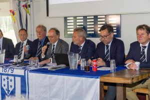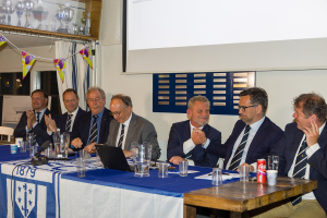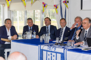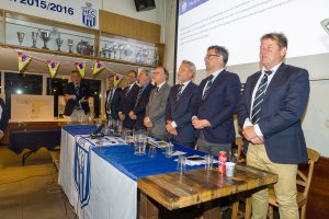 Onder grote belangstelling liet de ledenvergadering zich bijpraten over alle aspecten van de nieuwbouwplannen. Onder aanvoering van voorzitter Dirk Jan Rutgers en penningmeester Bas Rekvelt, daarbij ondersteund door het bestuur en de accommodatiecommissie, kwamen alle stappen van het bouwproces alsmede de financiële onderbouwing voor de plannen nauwgezet aan de orde. Architect Heiko Hulsker praatte de leden bij over zijn ontwerp, een prachtig nieuw en modern clubhuis. Nadat eerder al de benodigde vergunningen waren verstrekt en ook de selectieprocedure voor het vinden van een aannemer was afgerond, was het nu aan de leden om zich uit te spreken over de plannen. Uit de stemmingsprocedure die volgde bleek dat de leden zich unaniem achter het besluit schaarden, waarna de voorzitter tevreden de historische woorden sprak: vrienden, we gaan bouwen! Erevoorzitter Hugo Bettink roemde de vele HFC’ers die actief hebben bijgedragen aan dit project. Hij riep de leden op om ook in de komende periode waar mogelijk het bestuur te ondersteunen bij de bouw.