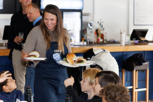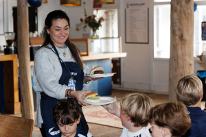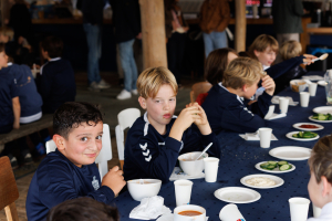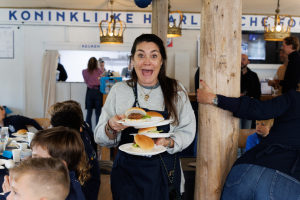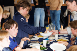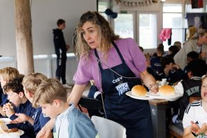 De fantastische ouders zetten in één uur meer dan 5000 stappen om soep, hamburgers, komkommers, frites (of patat 😉) en ijstaart te serveren.