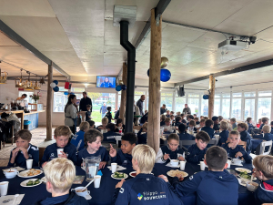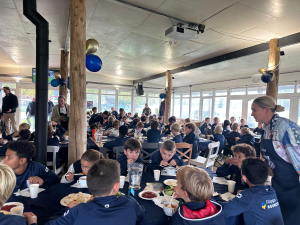 Afgelopen dinsdag vond de Koken voor Kanjers-editie voor de O11-sectie plaats! Marcel had de mise-en-place perfect voorbereid, waarna de HFC-oudercrew enthousiast aan de slag ging met de voorbereidingen. De tafels werden mooi ingedekt, ballonnen opgeblazen en alles stond klaar om 80 kinderen na hun training (16.00–17.00 uur) te ontvangen.