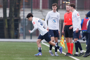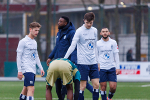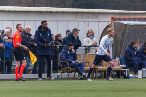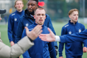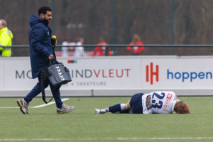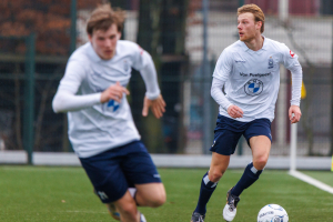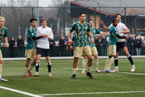 Na de vertrouwde en hartelijke binnenkomst via Jan Chris Heupers krijg ik aan de rand van veld 3 te horen dat Koen Tros en Delano Ladan wegens blessures (resp. knie en hersenschudding) ontbreken en dat Niels Donker wegens een blessure (teen) zeer waarschijnlijk niet een hele wedstrijd kan spelen. Dat is een domper van jewelste. Dat er ook twee nieuwe beloftevolle spelers op de bank zitten, Bart Muns en Binck Bakker, is natuurlijk verheugend, maar ga maar eens bekend tegen onbekend afwegen.