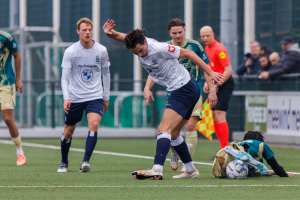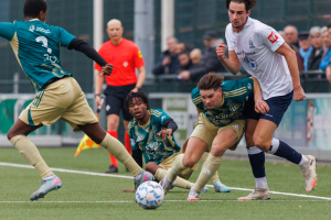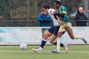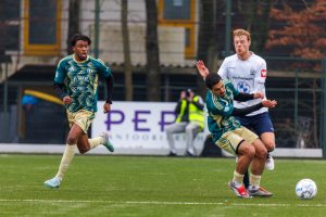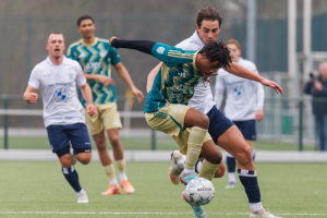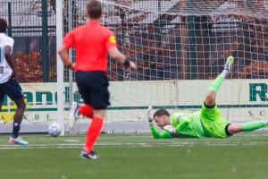 Maar ook onze keeper Mitchel Michaelis verricht in 28' een belangrijke redding met de voet op een uitbraak van Excelsior. Later zal hij dat nog eens doen, maar daarop kom ik nog terug.