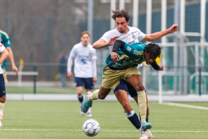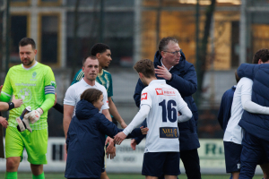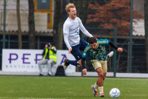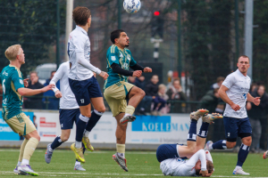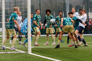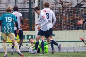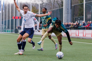 En dan komen er heel wat andere redders in beeld. Iedereen toont, om met de voorzitter te spreken, Ausdauer. Niels Donker verbijt zijn blessure en blijft tot en met de laatste minuut trekken en sleuren. En onze verdediging staat weer als een huis. Ruben Heeremans, André Morgan en Marijn Ploem (die dit seizoen beter dan ooit speelt) koppen en trappen alles weg. Zo wordt de uiterst belangrijke zege binnengesleept.