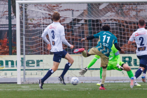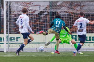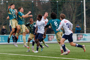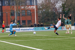 We zijn beland in de extra tijd van de eerste helft als eerst Ruben Heeremans verdedigend goed redt en daarna Levi de Wilde via een corner, een schot van Flip Klomp en een redding van de keeper van Excelsior uit de rebound raak schiet: 1-0!