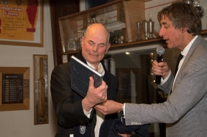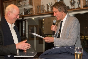 Het is tijd voor de cadeaus. De Bob-Show, zoals Rick het noemt. Dinerbon van de Haven van Zandvoort, een lekker luchtje van Parfumerie Hildering, paar flessen wijn van Grand Cru en de halve HFC-winkel met een das, jack en jubileumboek.