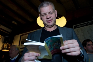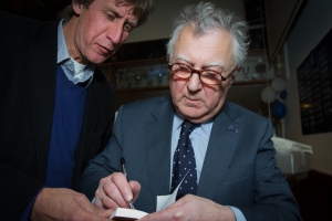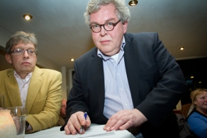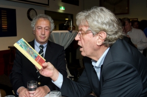 ,,Heertje is econoom, hoogleraar, publicist, columnist en onruststoker’’, zo begon Henk zijn inleidende praatje. ,,De boeken van Arnold Heertje waren voor velen onder ons verplichte kost. Economie is emotie, het gaat over politiek en wetenschap, maar het is ook een voorspelling van wat gisteren is gebeurd. Heertje provoceert, daagt uit, komt nog steeds in opstand over allerlei zaken. Bijvoorbeeld over de Noord-Zuid-lijn. Hadden ze maar naar hem geluisterd. Om goed op de hoogte te blijven leest Heertje veel. Hij leest een boek in een kwartier uit, terwijl wij gemiddeld een kwartier doen over één pagina uit een van zijn boeken.’’