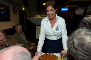 Vermogensbeheerder Wilgenhaege bood tijdens deze sponsorborrel niet alleen het welkomstdrankje en de borrelhapjes aan, maar gaf iedereen na afloop ook nog een exemplaar van het boek “Echte economie” van de hand van professor Heertje mee.