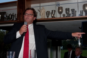 Vrijdag 25 september was tijdens de eerste officiële sponsorborrel van het seizoen de beurt aan Sjuul Paradijs. De hoofdredacteur van de Telegraaf zou al eerder komen, maar was toen door een longontsteking geveld. Henk Uildriks liet de aanwezige sponsors en andere genodigden weten dat Paradijs in de Amsterdamse Pijp werd geboren en dat hij daar als zoon van de eerste warme bakker van Amsterdam opgroeide. ,,Zijn vader bakte de lekkerste gevulde koeken en dat kun je nu nog zien aan Juul’’, aldus Henk. Paradijs was ooit een verdienstelijk zwemmer, maar beperkt zijn lichaamsbeweging nu tot het heen en weer lopen naar zijn auto. Henk: ,,En ook dat kun je zien!’’
